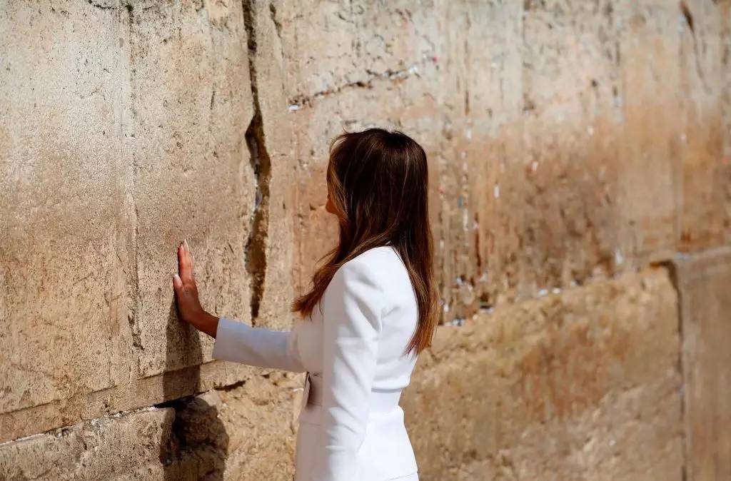 特朗普亦特地到同样位于旧城区的哭墙,他戴上犹太传统的圆顶帽,并用右手触摸墙身,闭目虔诚祷告良久,并依照惯例将一张“给上帝的祈祷纸条”塞在哭墙墙缝中。