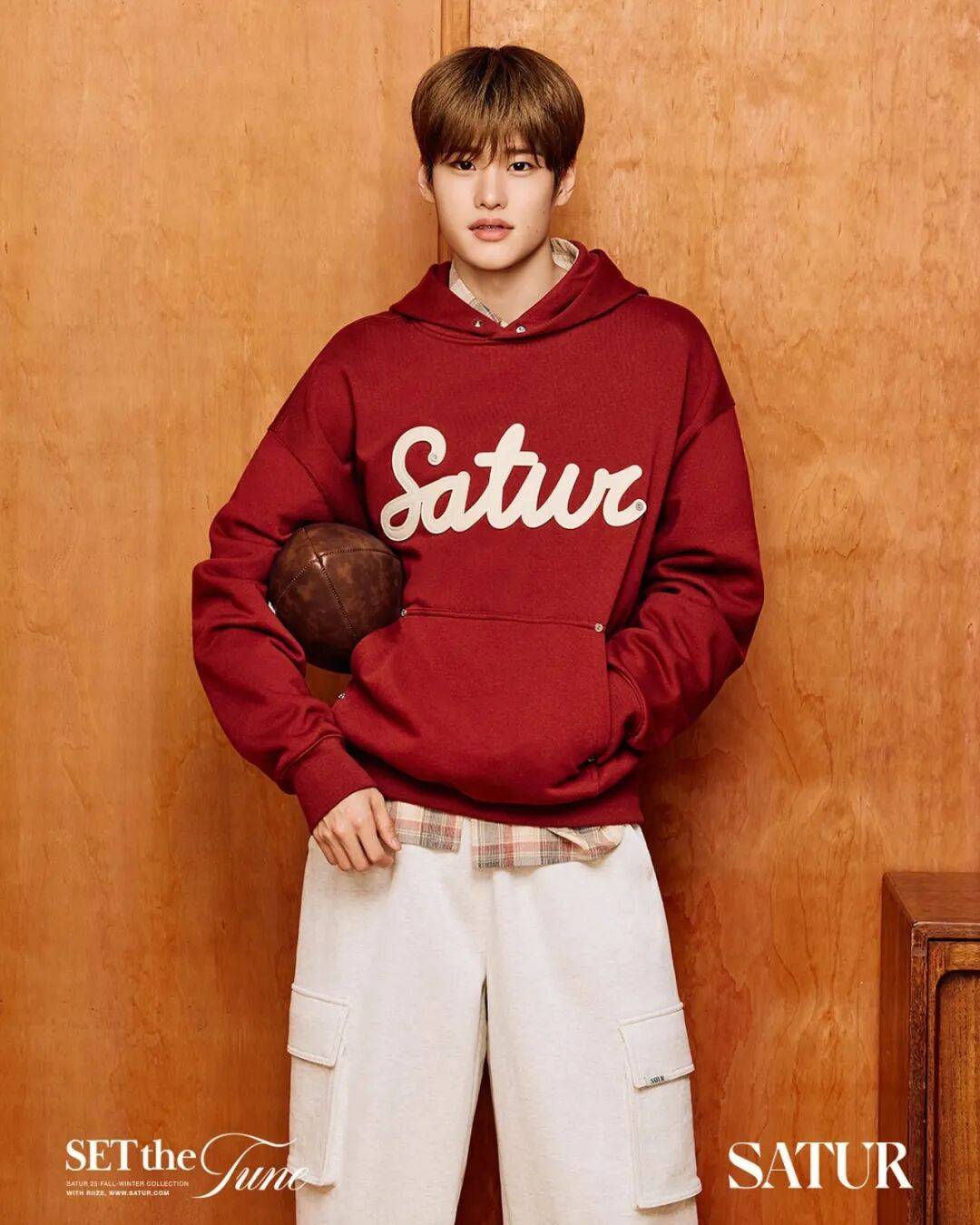 韩国男团RIIZE成员李炤熙Sohee上身的红色连帽卫衣,来自韩国时尚品牌SATUR,同样是不少运动男孩的pick,舒适又能展现少年感,也很适合作为日常百搭的单品。