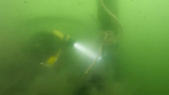 第二天,考古队员们铆足了劲重新打捞。威海湾的水下能见度本就很低,抽沙导致泥沙泛起,更是伸手不见五指,潜水员在水下完全靠手摸。